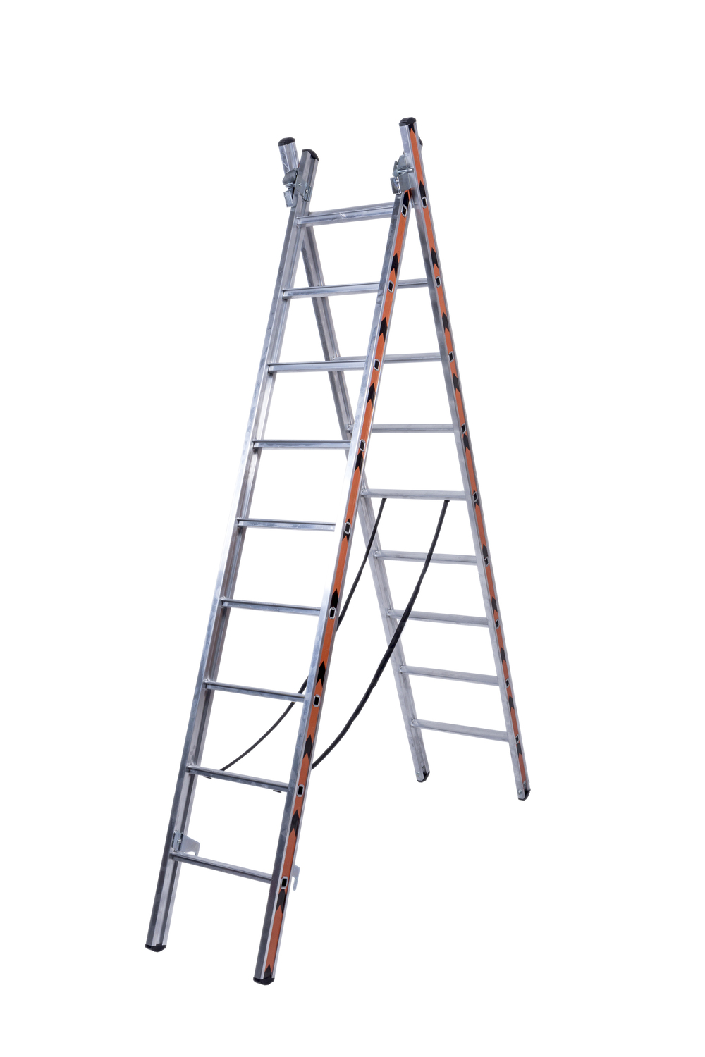 Στιβαρή και ευέλικτη, η διπλή πτυσσόμενη σκάλα αλουμινίου λειτουργεί είτε ως μονή είτε ως διπλή, καλύπτοντας κάθε ανάγκη σε επαγγελματικούς και οικιακούς χώρους. Διαθέτει πρεσαριστά, ανάγλυφα σκαλοπάτια για ασφαλές πάτημα, ιμάντες ασφαλείας και τραβέρσα με αντιολισθητικά πέλματα για μέγιστη σταθερότητα. Οι μηχανισμοί σύνδεσης είναι από γαλβανιζέ λαμαρίνα υψηλής αντοχής.